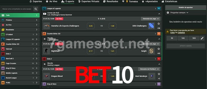 O BET10 oferece uma grande seleção de opções de apostas em e-sports com probabilidades competitivas